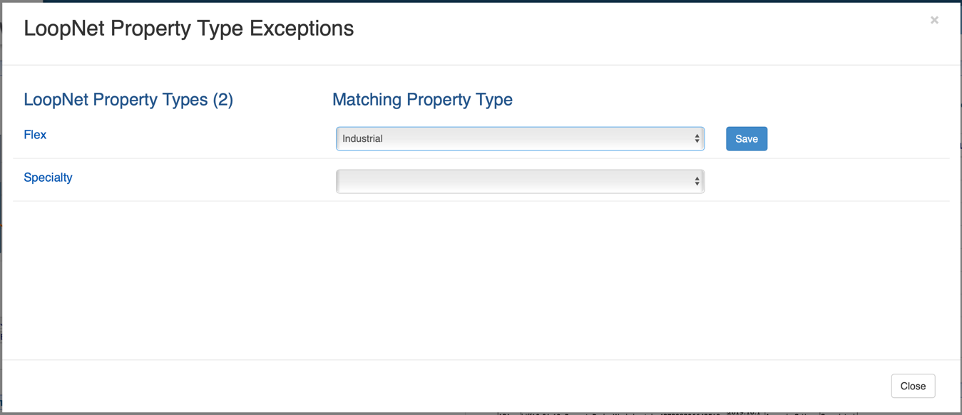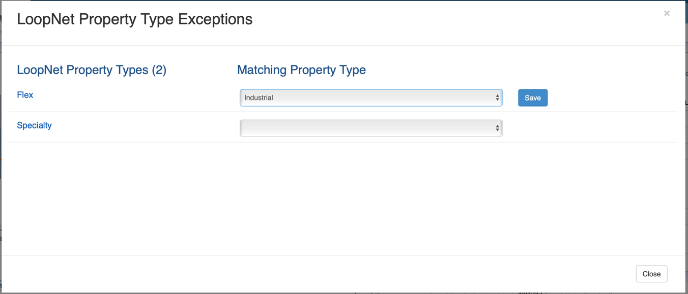 Select in the ‘Matching Property Type’ dropdown the matching Brokerage Applications Property Type that matches the ‘LoopNet Property Type’.
