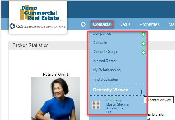 Above the main navigation there is a Search Option. This can be used if you are looking for a specific Property, Contact, Company, Deal, or Assignment. To learn more about how to use this search option, click to (LEARN MORE).