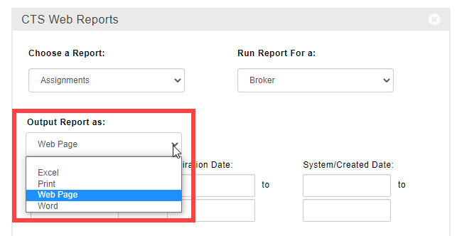 For some reports, you can choose how you want the report to be output before running it.
