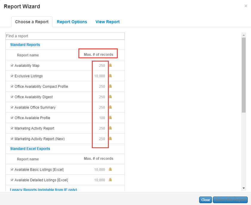 The ‘Max. # of records’ will display in all ‘Report Wizards’